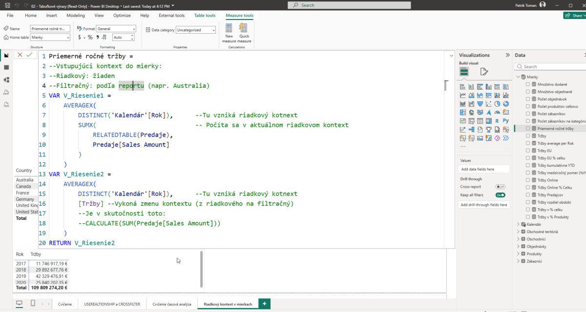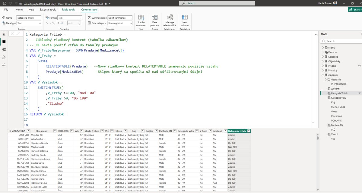 Microsoft Power BI III. - Vytváranie dátového modelu pomocou jazyka DAX