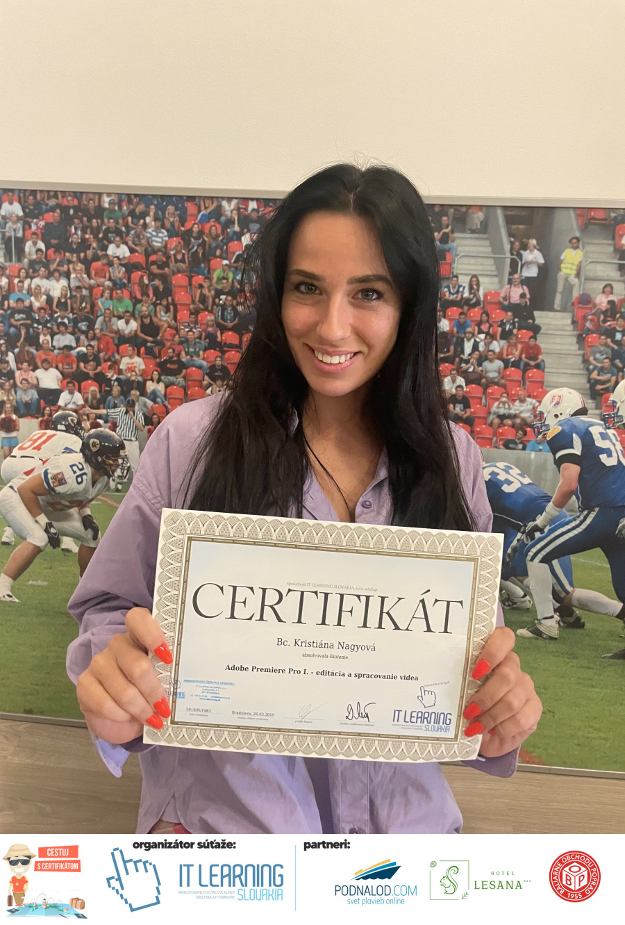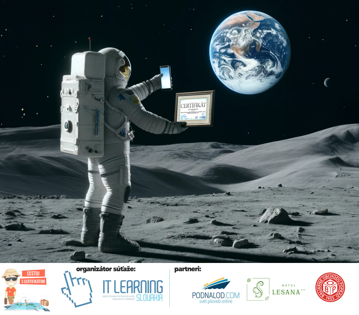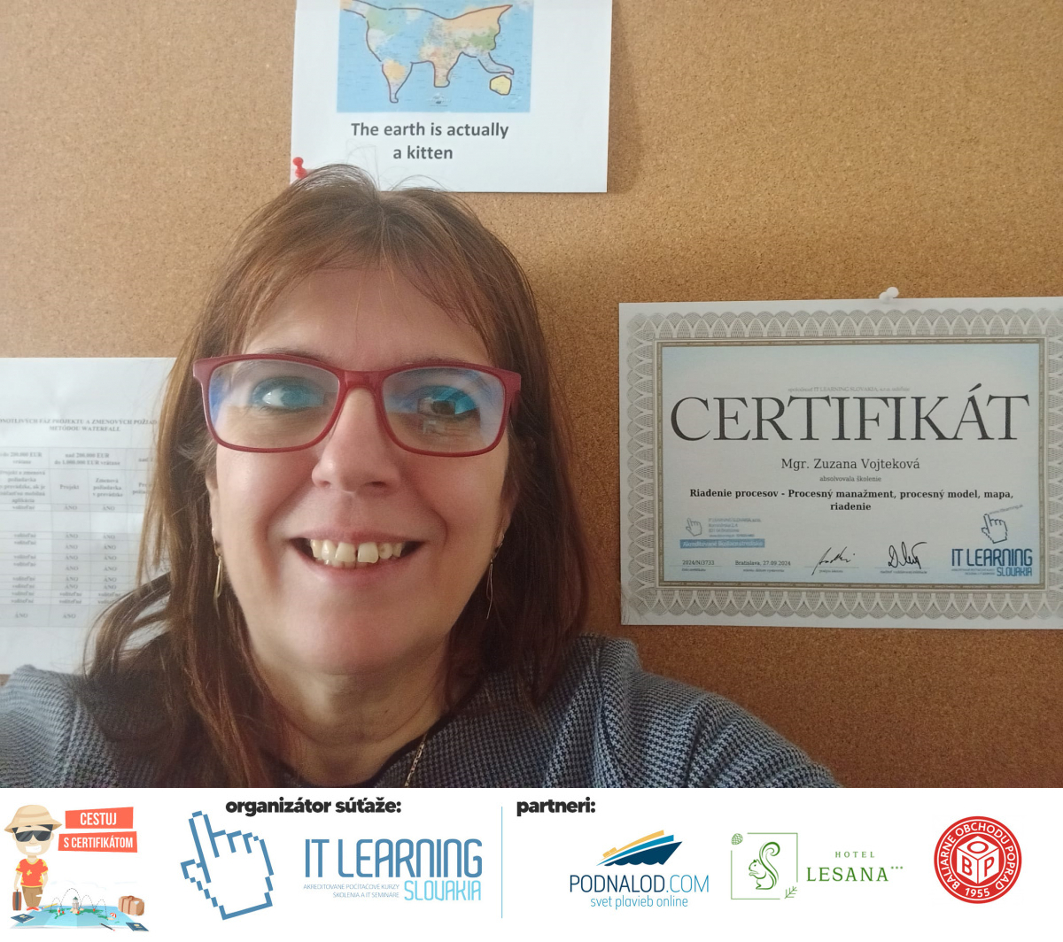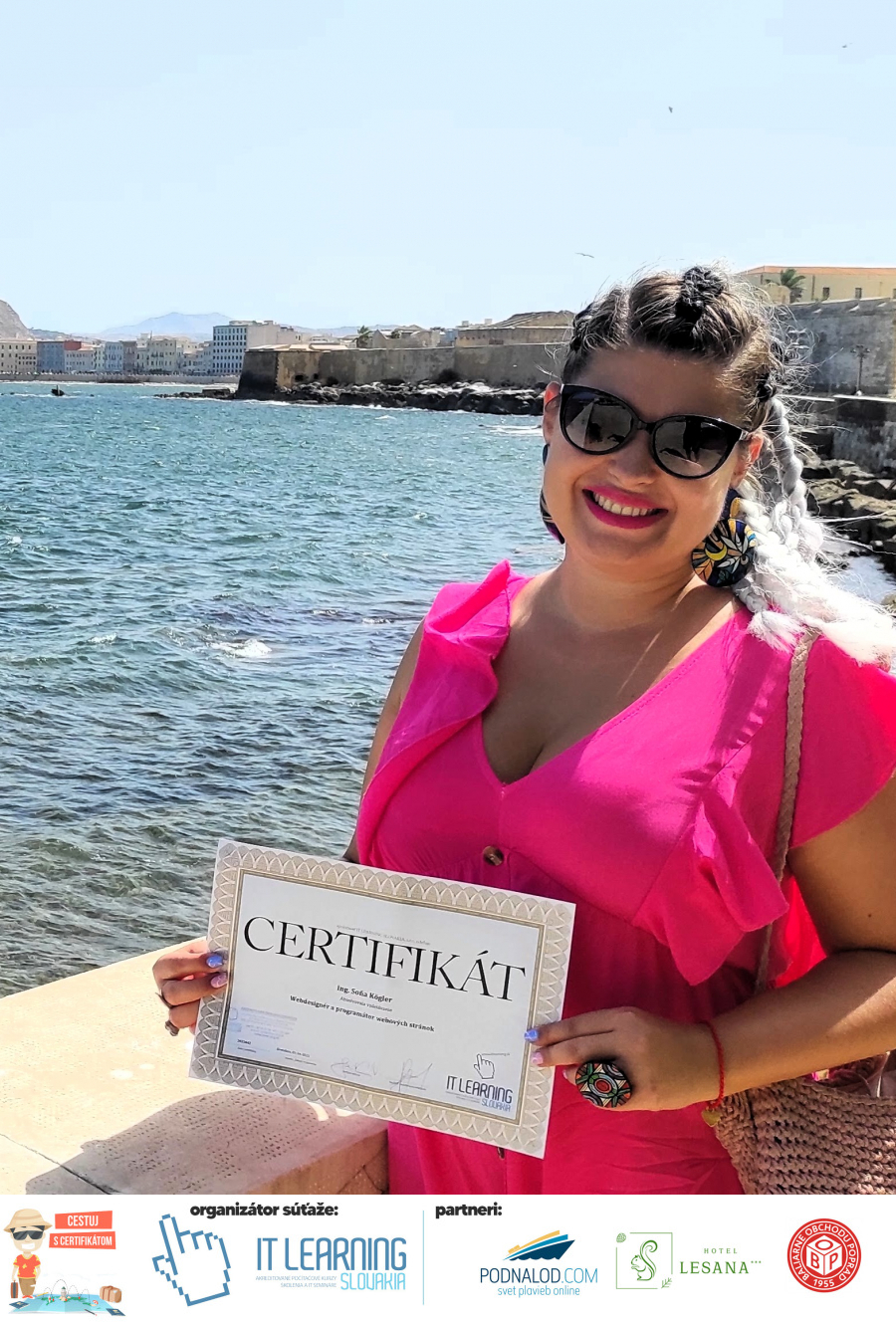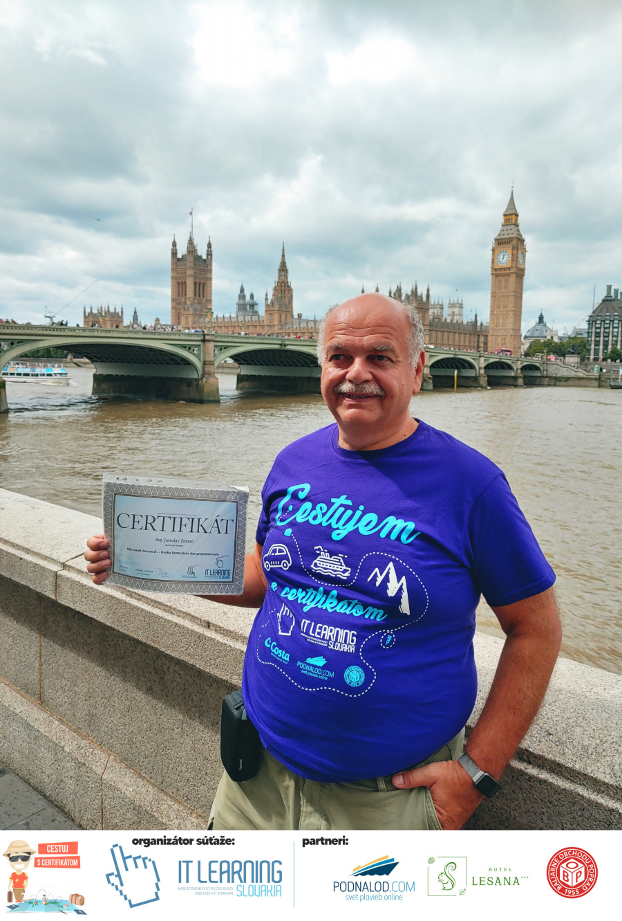 Podmienky a pravidlá súťaže: Organizátorom súťaže je akreditované školiace a IT vzdelávacie stredisko IT LEARNING SLOVAKIA, s.r.o. Zmena podmienok je vyhradená. Zaslaním fotografie súhlasíte s podmienkami, ako aj s uverejnením zaslanej fotografie na našich oficiálnych webstránkach a na sociálnych sieťach. Jeden súťažiaci a teda jeden účastník kurzu môže prihlásiť maximálne 3 fotografie. Súťaž je určená výhradne pre účastníkov našich kurzov, ktorí majú certifikát vystavený na svoje meno a odovzdávanie ceny je podmienené kontrolou mena súťažiaceho s menom  na prezenčnej listine po kurze. Do súťaže sa nesmú zapojiť zamestnanci spoločnosti pracujúci na trvalý pracovný pomer, interný ani externí lektori pracujúci na živnosť či dohodu. Prihlásiť sa certifikát môžu a rodičia detí, ktorí absolvovali tábor a teda fotografiou certifikátu z tábora. Fotografie môžu byť použité na marketingové účely šírené internetovou formou. Na výhru neexistuje právny nárok. Na zaradenie fotografie do súťaže taktiež nevzniká nárok a vyhradzujeme si právo na odmietnutie akejkoľvek prihlásenej fotografie bez uvedenia dôvodu. Fotografie nízkej kvality alebo zobrazujúce nevhodnú situáciu či objekt, vulgárne či, značne retušované zaradené do súťaže nebudú. Spoločnosť sa zaväzuje chrániť vaše osobné údaje, ktoré nebudú poskytnuté tretím osobám v súlade s aktuálne platným zákonom o ochrane osobných údajov GDPR. Email poskytnutý do súťaže bude výhradne použitý iba na informačné emaily ohľadom súťaže. Zmena pravidiel, cien v súťaži či termínov odovzdávania cien a pravidiel vyhradená. Všetky výhry prislúchajú výhradne súťažiacemu a výhercovi, ktorý ju smie využiť a je neprenosná. Pobytové poukazy a zájazdy sú viazané na meno účastníka v súťaži. Prístup do VideoClass sa aktivuje automaticky na e-mail, z ktorého bola odoslaná registrácia fotografie, a to na obdobie 60 dní od schválenia a overenia fotografie našimi zamestnancami.