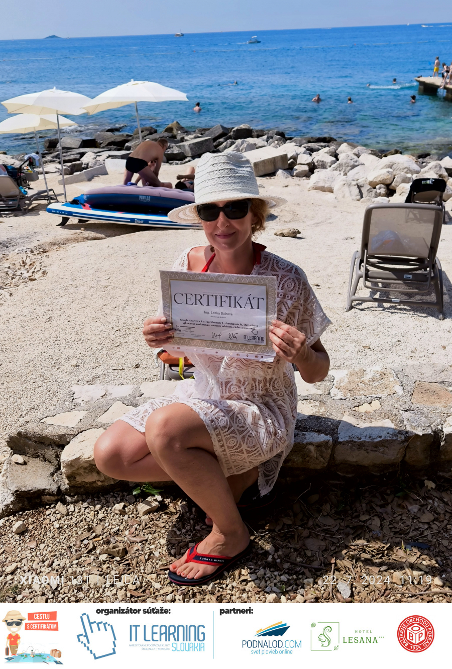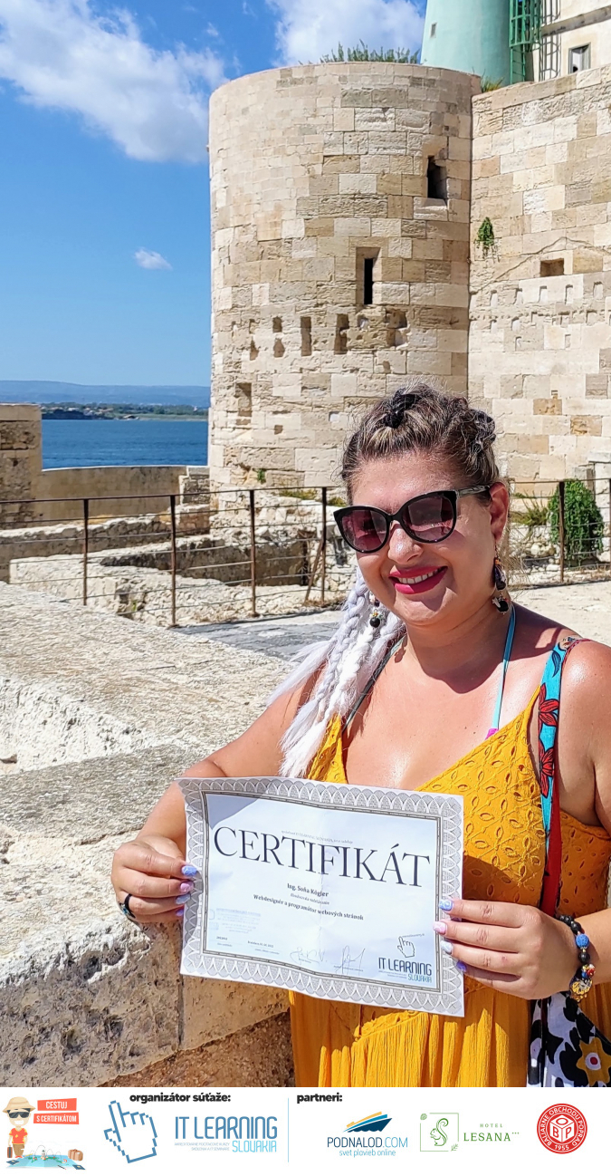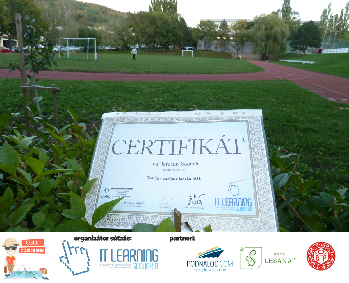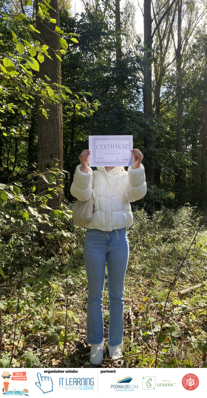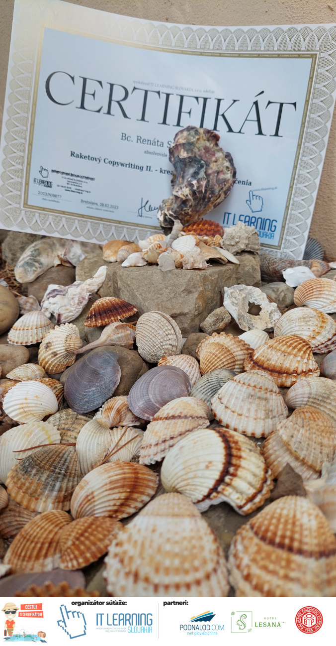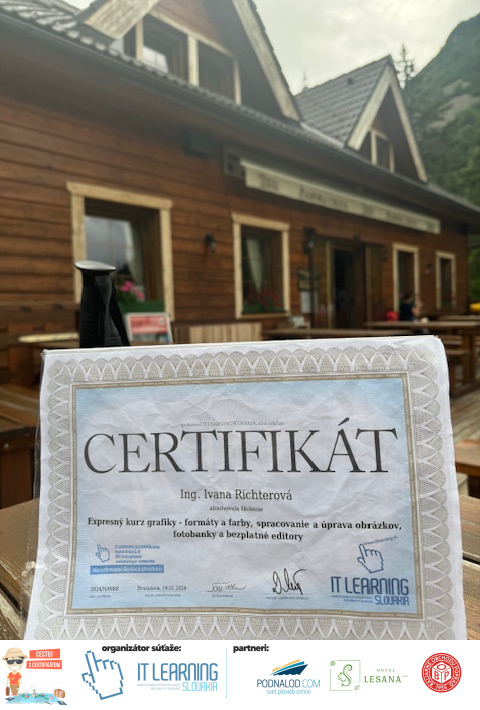 Boli ste u nás niekedy na kurze? Online alebo v našej učebni? To je skvelé, pretože určite máte z kurzu certifikát. Zoberte tento rok svoj certifikát, ktorý ste u nás získali so sebou na dovolenku, či kamkoľvek na výlet, do záhrady, na chatu, na párty, k vode, na čln, do Tatier, či na Rysy alebo len tak na prechádzku, či na túru do lesa, do ZOO alebo na hrad, na balón, do lietadla, do parku, či na pieskovisko – proste kamkoľvek, kde sa cítite dobre a pošlite nám fotku, na ktorej s vami certifikát relaxuje a hrajte o fantastické ceny! Chceme náš (vlastne jednoznačne už váš) certifikát vidieť inde ako na stene, v šuflíku alebo v skrinke.