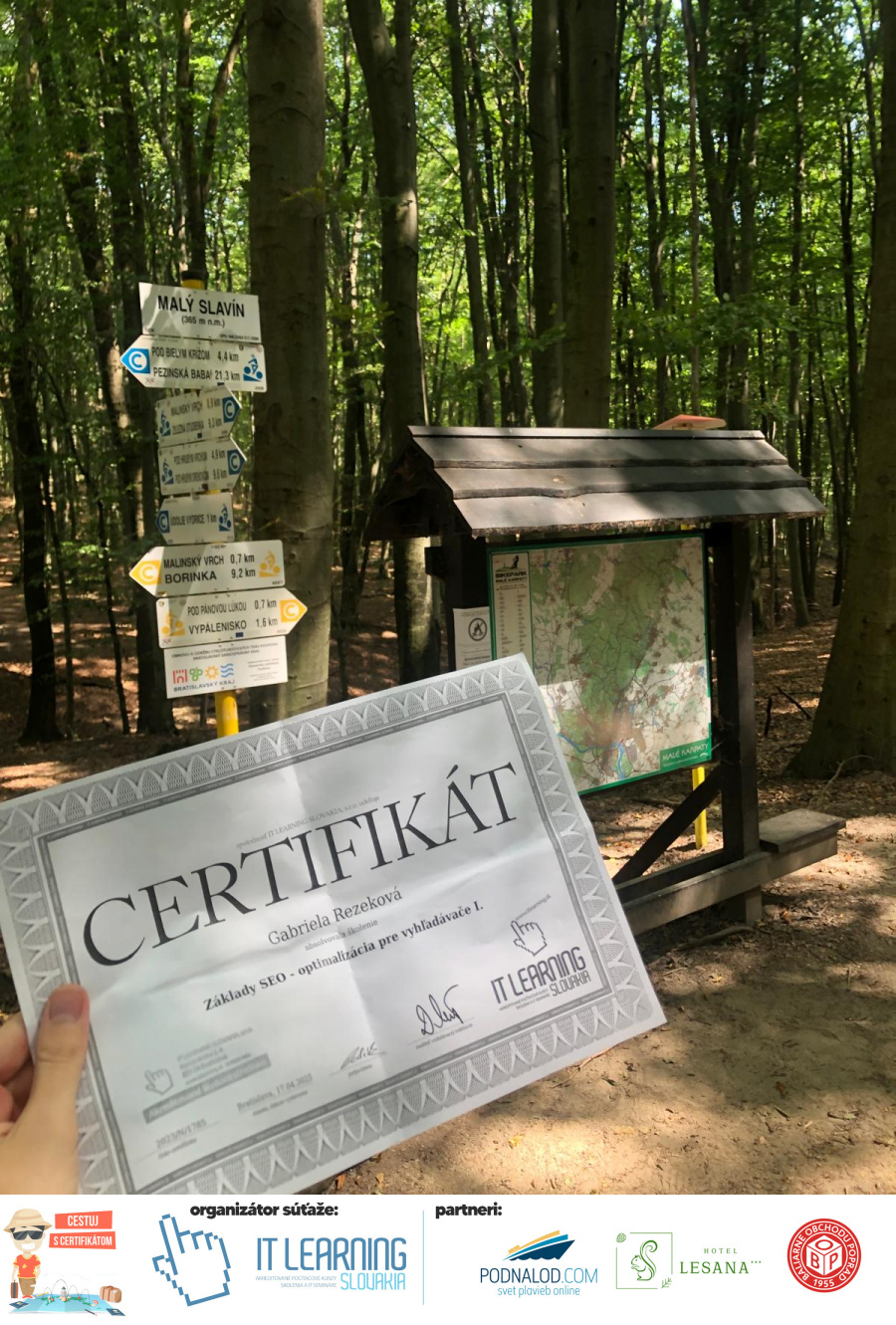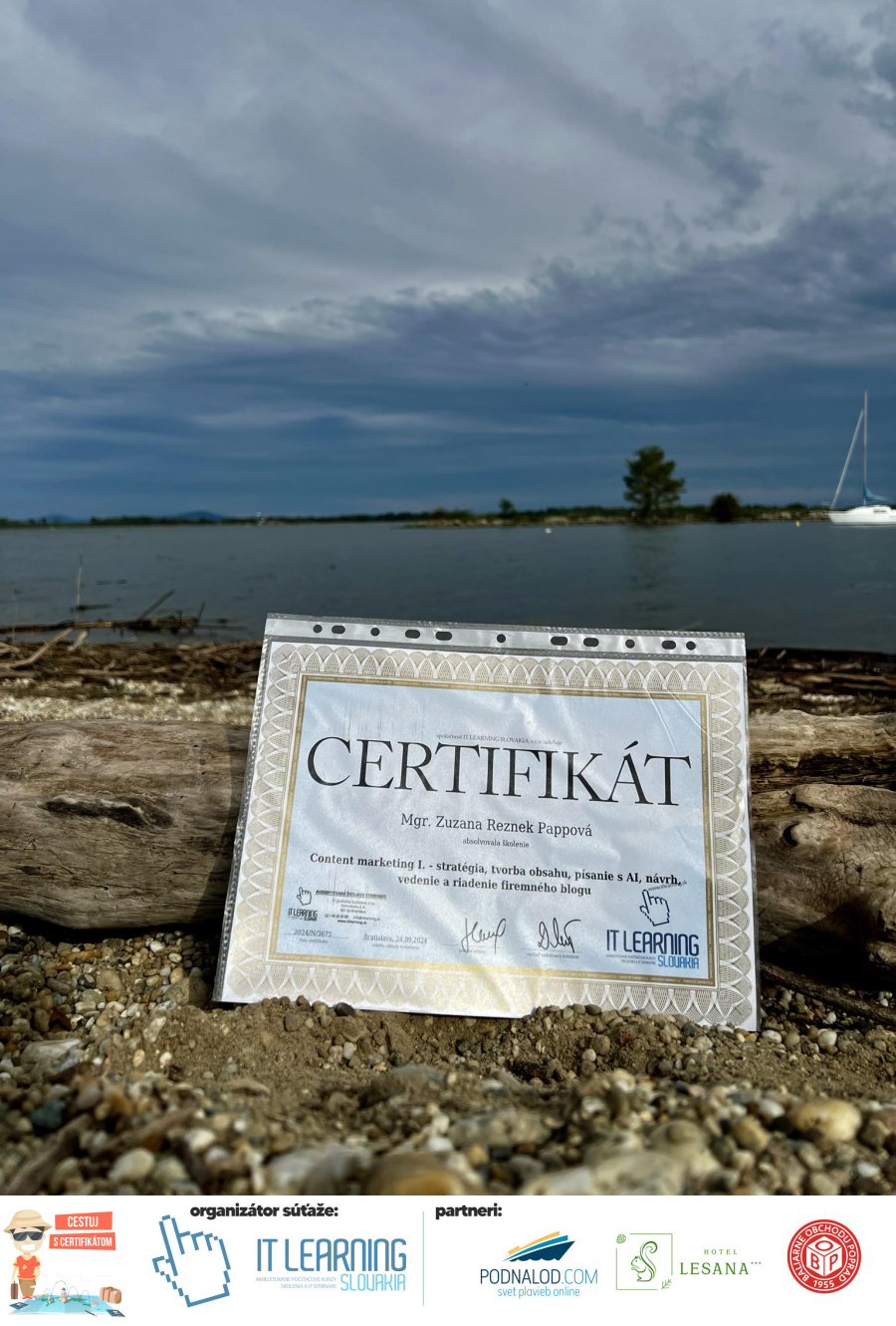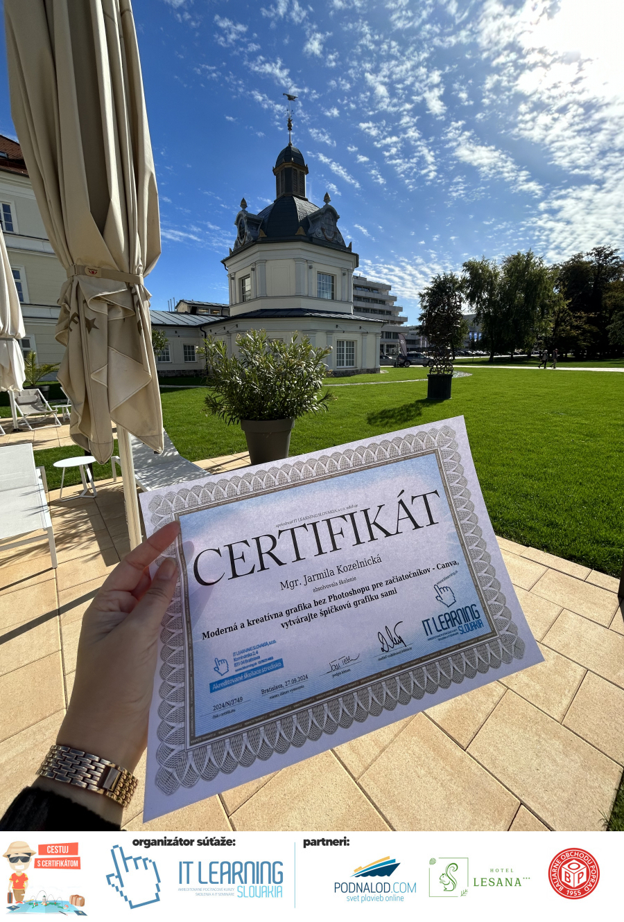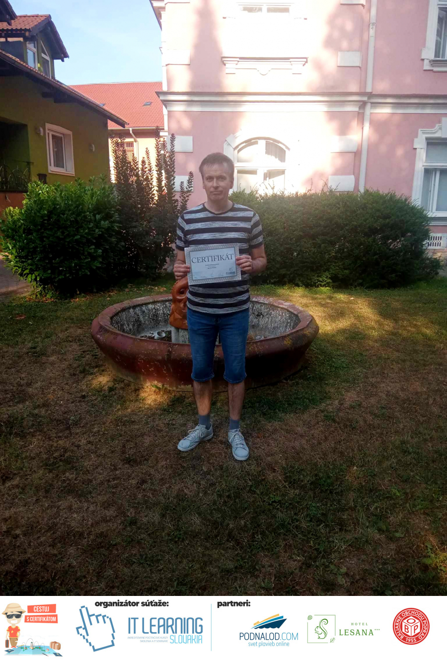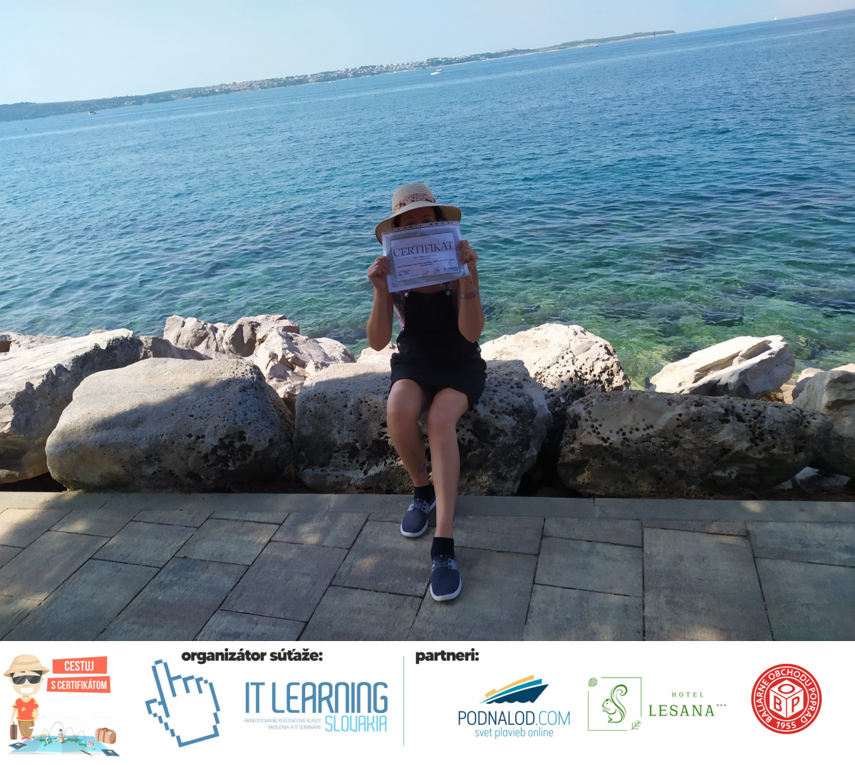 Boli ste u nás niekedy na kurze? Online alebo v našej učebni? To je skvelé, pretože určite máte z kurzu certifikát. Zoberte tento rok svoj certifikát, ktorý ste u nás získali so sebou na dovolenku, či kamkoľvek na výlet, do záhrady, na chatu, na párty, k vode, na čln, do Tatier, či na Rysy alebo len tak na prechádzku, či na túru do lesa, do ZOO alebo na hrad, na balón, do lietadla, do parku, či na pieskovisko – proste kamkoľvek, kde sa cítite dobre a pošlite nám fotku, na ktorej s vami certifikát relaxuje a hrajte o fantastické ceny! Chceme náš (vlastne jednoznačne už váš) certifikát vidieť inde ako na stene, v šuflíku alebo v skrinke.
