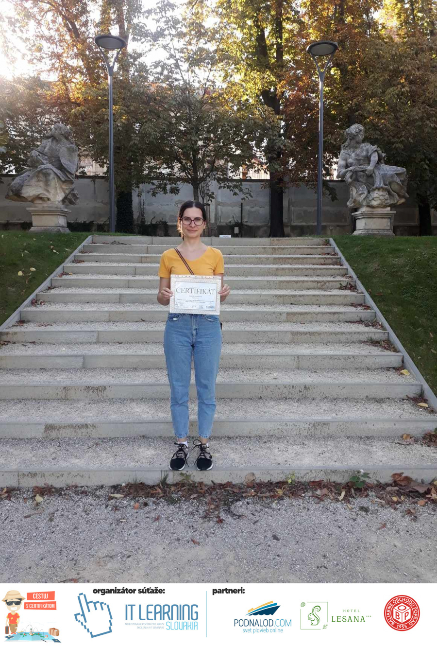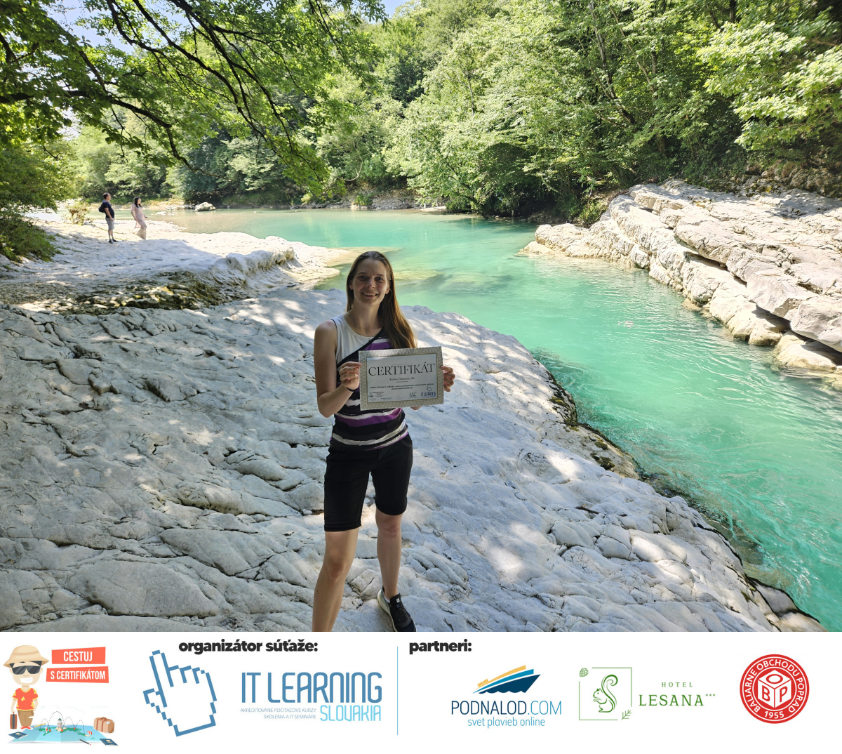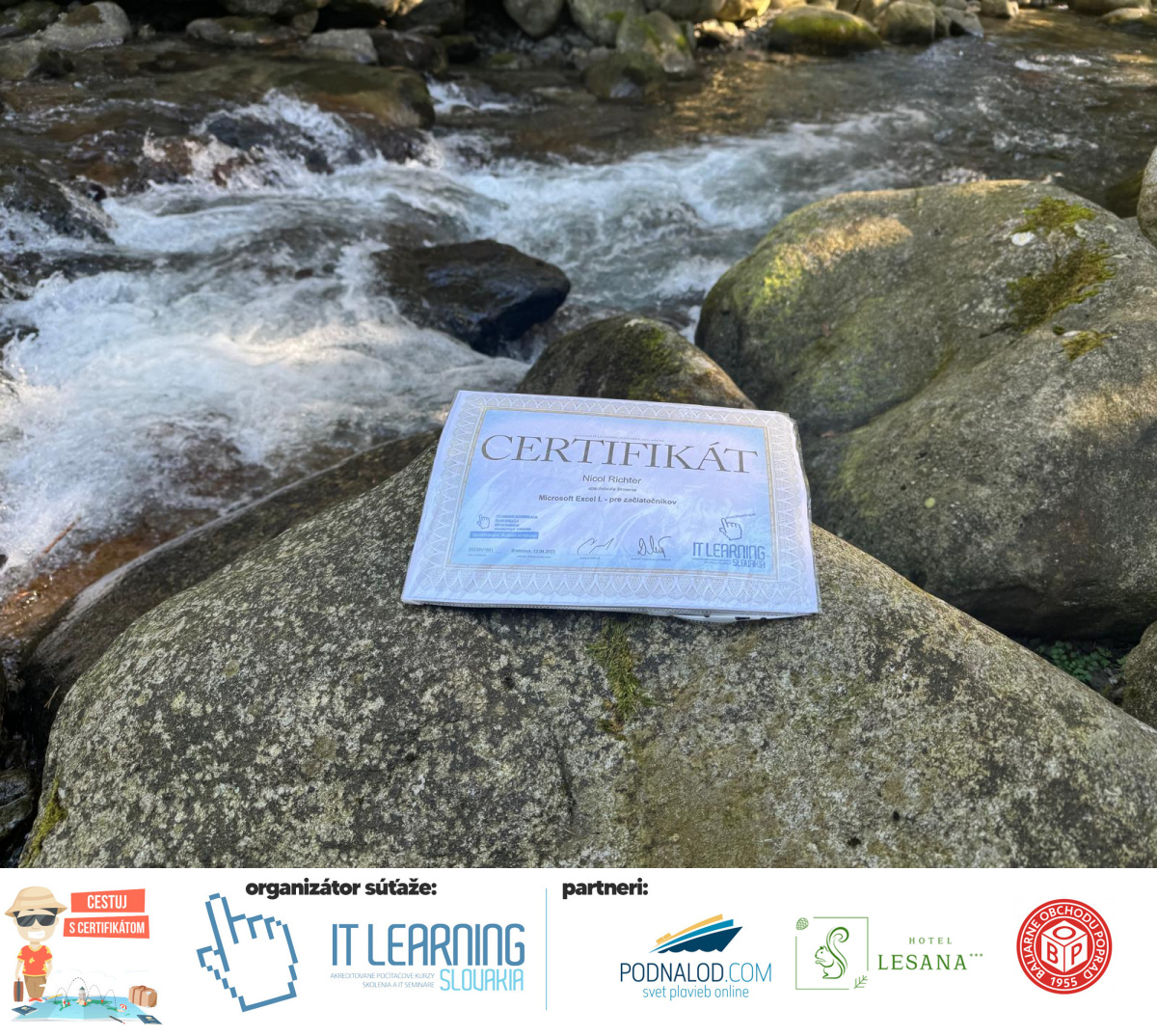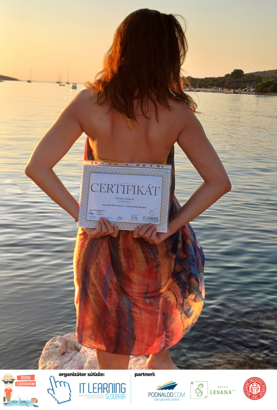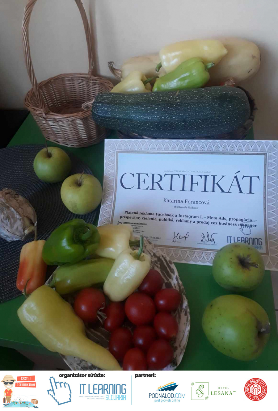 Boli ste u nás niekedy na kurze? Online alebo v našej učebni? To je skvelé, pretože určite máte z kurzu certifikát. Zoberte tento rok svoj certifikát, ktorý ste u nás získali so sebou na dovolenku, či kamkoľvek na výlet, do záhrady, na chatu, na párty, k vode, na čln, do Tatier, či na Rysy alebo len tak na prechádzku, či na túru do lesa, do ZOO alebo na hrad, na balón, do lietadla, do parku, či na pieskovisko – proste kamkoľvek, kde sa cítite dobre a pošlite nám fotku, na ktorej s vami certifikát relaxuje a hrajte o fantastické ceny! Chceme náš (vlastne jednoznačne už váš) certifikát vidieť inde ako na stene, v šuflíku alebo v skrinke.
