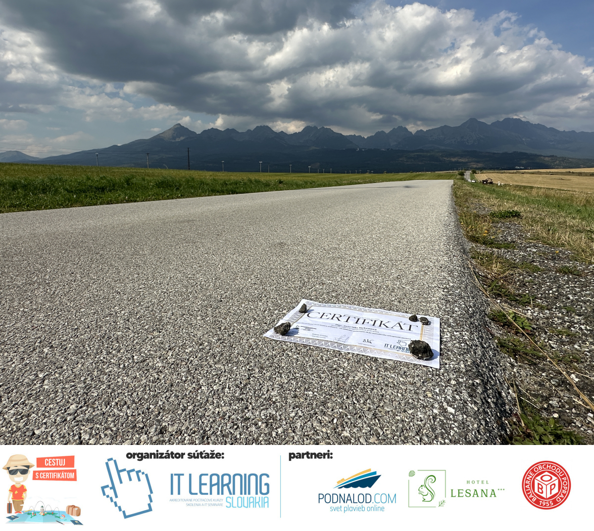 cestuj toto leto s certifikátom – odfoťte (sa) originálne so svojím certifikátom, pošlite nám fotku a hrajte o skvelé ceny ako luxusnú plavbu loďou, skvelý pobyt v Tatrách, poukazy na kurzy či exkluzívny set čajov a kávy a iné!