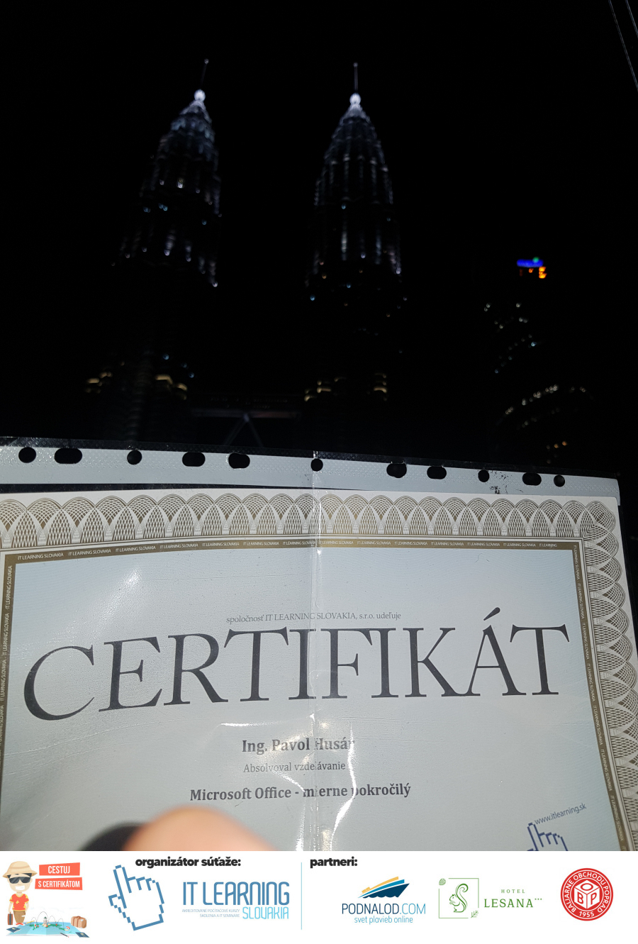 urobte s certifikátom parádnu fotku a zachyťte ho v nevšednej atmosfére, pričom na fotke nemusíte byť osobne – ale môžete